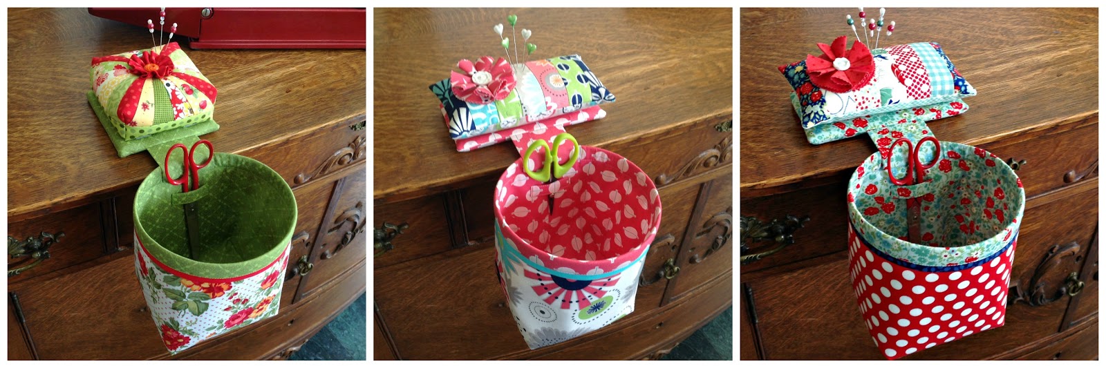 I've been spreading the love, THREAD CATCHER LOVE, that is! I was asked back for a second Thread Catcher Workshop Day at the Rustic Rooster Quilt Shop, and what a fun day we had! I led two workshop sessions, one in the morning and one in the afternoon. Everyone arrived with their fabrics cut and ready to sew. I provided the pattern, a supply kit and lots of personal instruction.